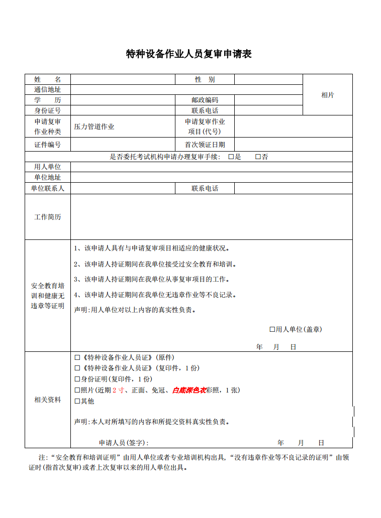 1、《特種設備作業人員復審申請》1份
