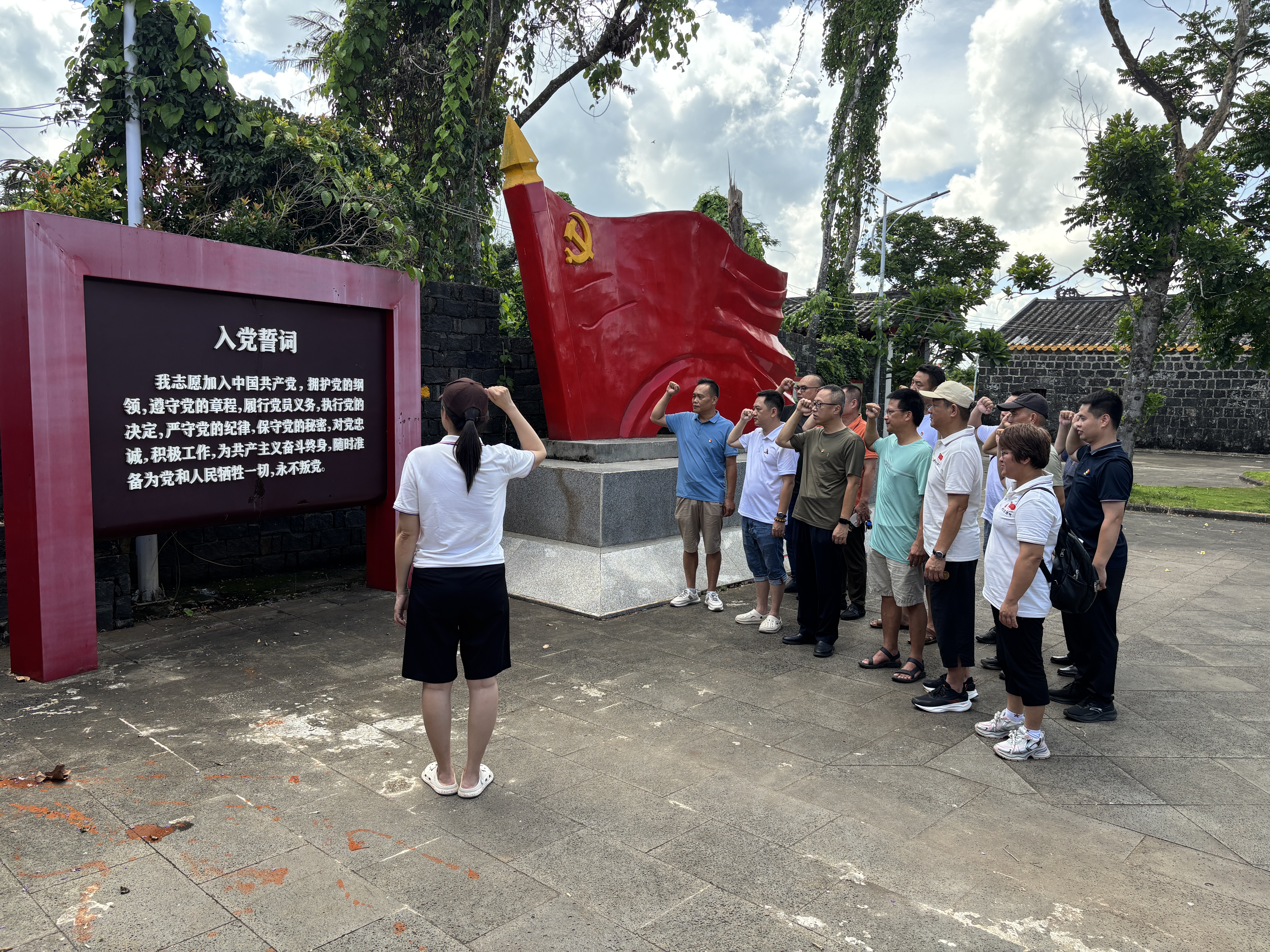 6月28日上午,民生燃氣第二黨支部組織黨員前往海口市新坡鎮仁臺村革命根據地舊址開展主題黨日活動。在仁臺陳列館,黨員們通過參觀珍貴的歷史照片和實物展品,深入了解1928年馮白駒同志在此領導革命斗爭的光輝歷史。面對鮮紅黨旗,全體黨員重溫入黨誓詞,鏗鏘誓言在革命舊址久久回蕩。